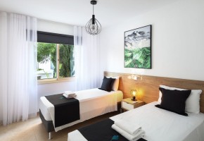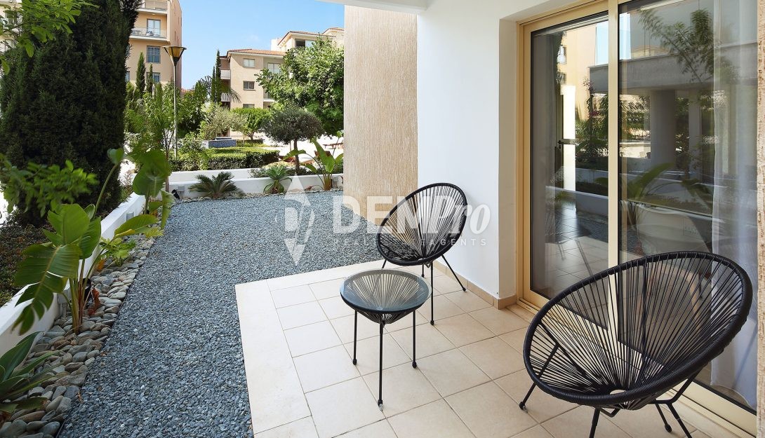 Beautifully finished and modern in style, this three-bedroom apartment is located on the ground floor and has an open plan living room leading to a spacious private balcony with magnificent pool and garden views. Fully equipped kitchen separated from a living room open space with a dining area. Three bedrooms with fitted wardrobes and a family bathroom conclude the property. Master bedroom has en-suite facilities.