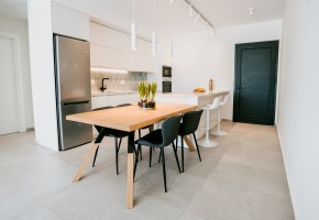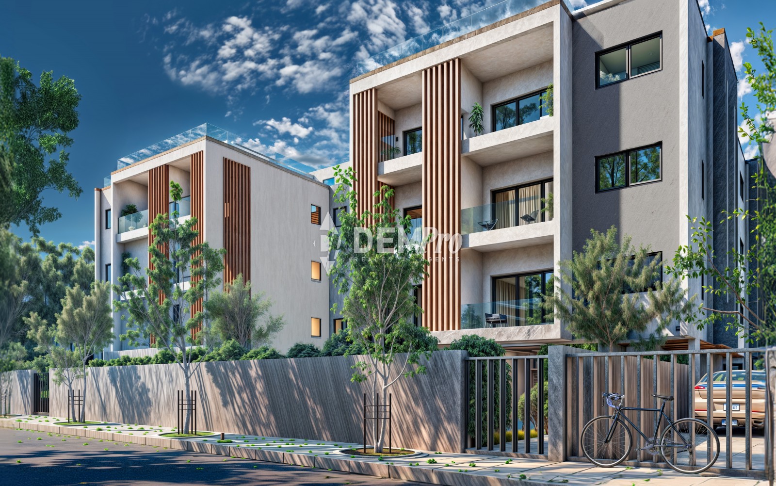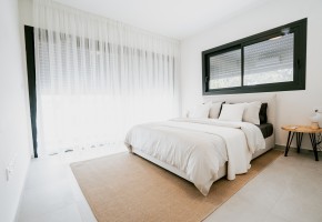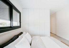 Each unit is crafted meticulously, ensuring a blend of modern aesthetics and practical functionality. Residents will enjoy a communal pool and a playground, and each apartment comes with covered parking, AC units in every room, and electric shutters in all bedrooms.