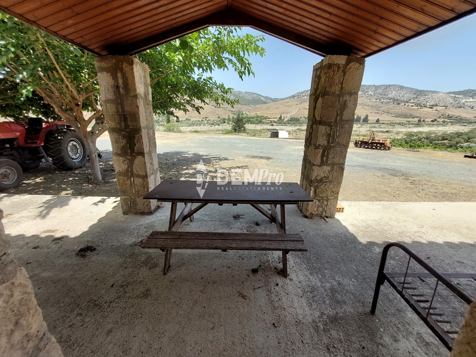 The land is covered by mature trees and a big vine-ward.