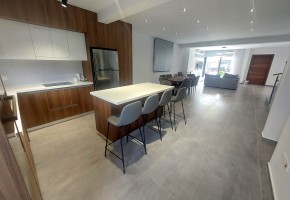 The property consisted of a king-sized open plan living-dining-kitchen area with beautiful modern design. Upstairs there are 3 double bedrooms and a family bathroom. Also, the main bedroom has an on-suite shower room and a walk-in closet. Moving upstairs to the top-floor, there is a big roof-terrace with nice views. In addition, on the roof terrace there is a provision of creating a 4th bedroom.