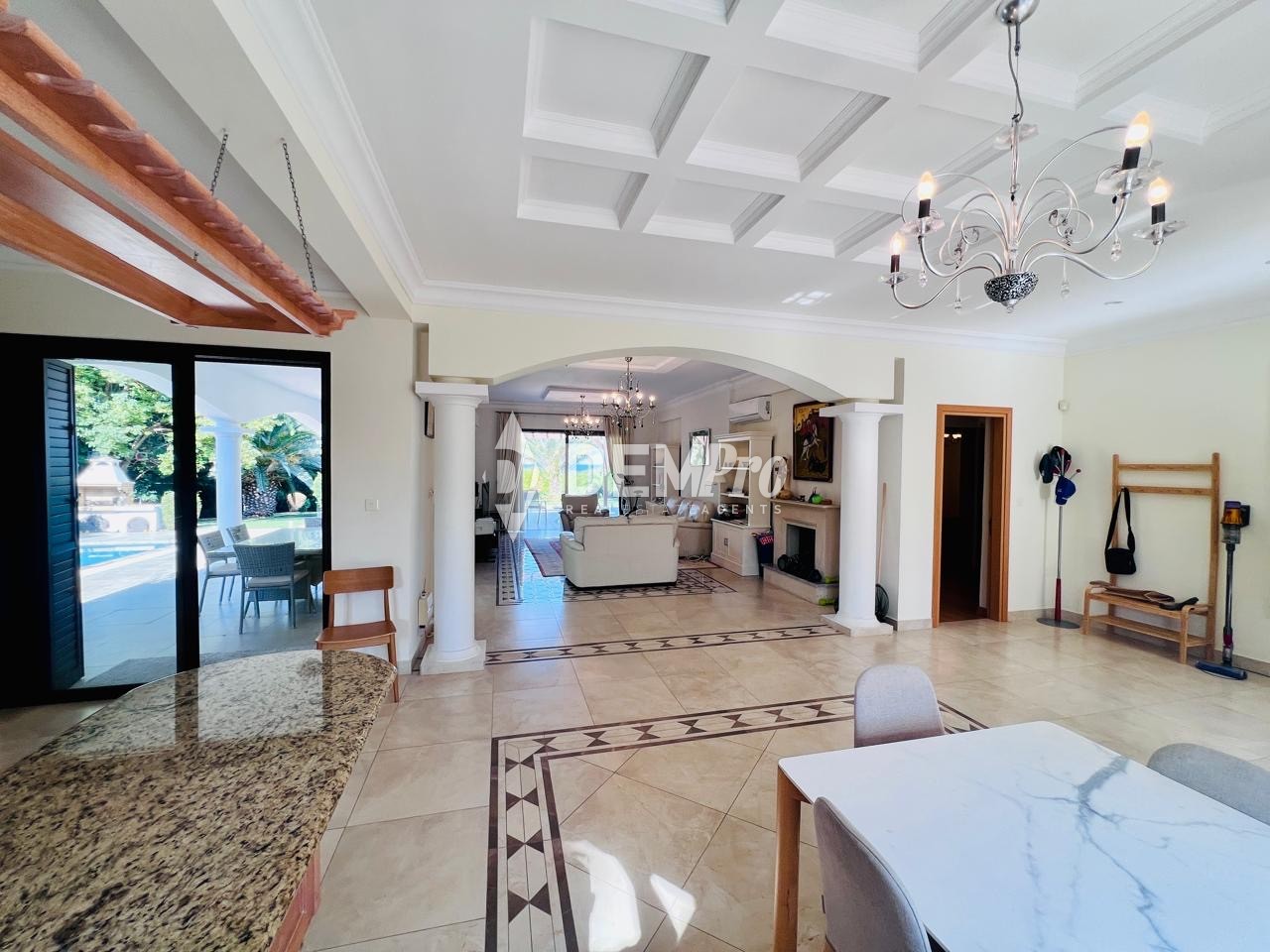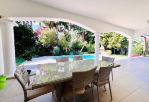 This exclusive newly renovated 4 bedroom beachfront villa features a spacious living room with open plan fully equipped kitchen with granite work tops and dining room finished to high standards.