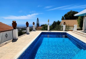 Nestled amidst the picturesque hills of charming Tala Village, this delightful bungalow boasts a serene setting near the village square adorned with local taverns, quaint coffee shops, and local stores. Located at the end of a tranquil cul-de-sac road, it offers serenity amid nature's embrace, showcasing breath-taking panoramic views, yet remains conveniently close, just a 2-5 minute drive to local conveniences and dining options. Property Highlights: This bungalow is built on a generous 1000m² plot. The layout combines aesthetics & functionality. The house includes a spacious, fully equipped kitchen with separate storage and a utility/laundry room, large open-plan living area featuring a cosy fireplace that opens to a large veranda leading to the garden and seamlessly connected to a swimming pool and another covered veranda leading to the garden on the side of the house. There are 4 bedrooms and 3 bathrooms, working space and entrance-hall area, along with covered parking and garage. The house is sold partly furnished, equipped with appliances, air conditioning, central heating and heated floors in the living room and bathrooms. The property boasts 11 kW photovoltaics for enhanced energy efficiency, and a water well that significantly reduces the cost of maintaining the swimming pool. There is an extra little house on the yard with a bedroom and a bathroom, which can be used as a workroom or for a maid. Title Deeds available. Location: 6 km to the nearest beach 300 meters of all essential amenities Just 4km from Paphos Town Centre 13 km to Paphos International Airport